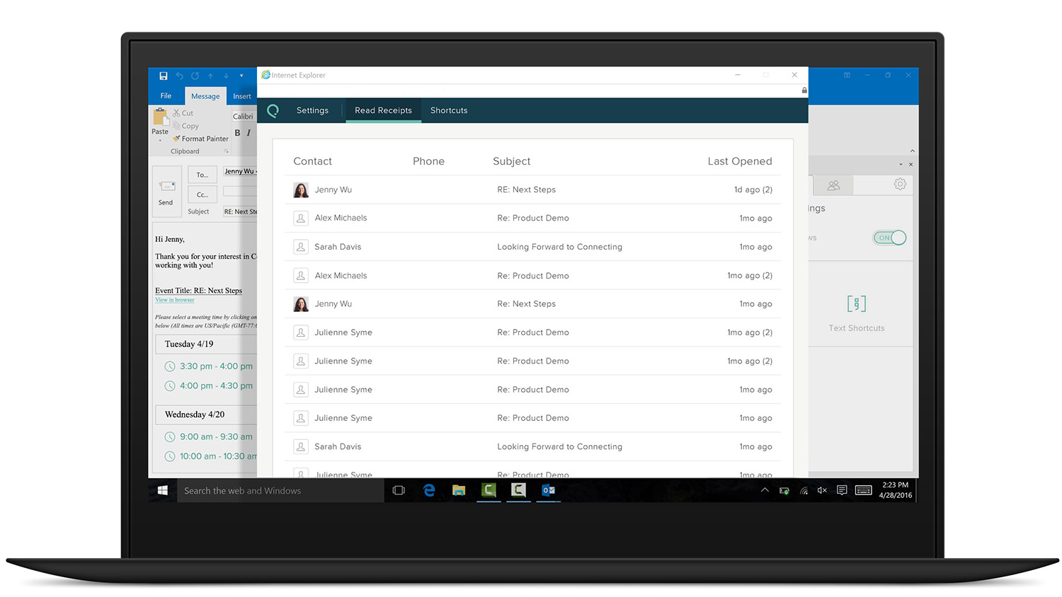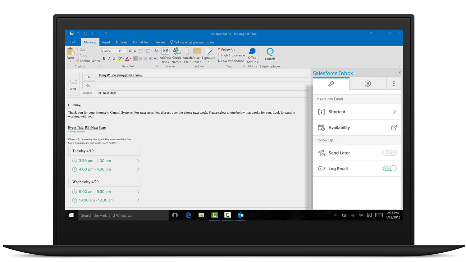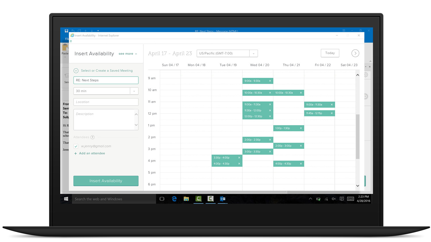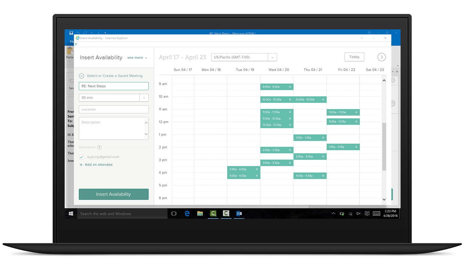Automatically insert your availability to schedule a meeting in just one email. Spend less time coordinating and more time selling.