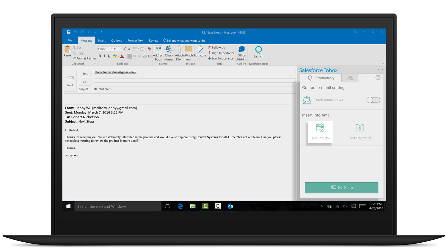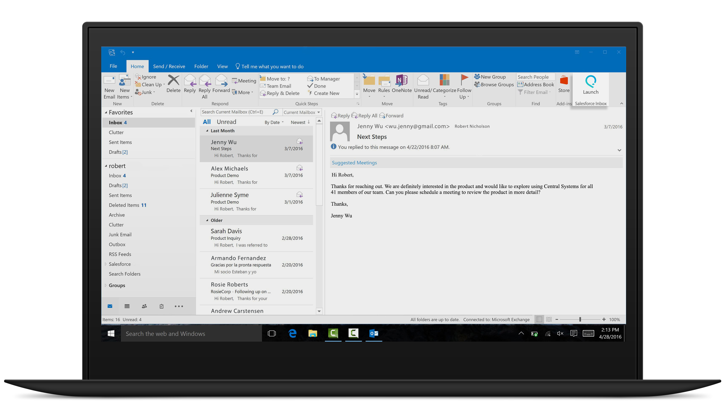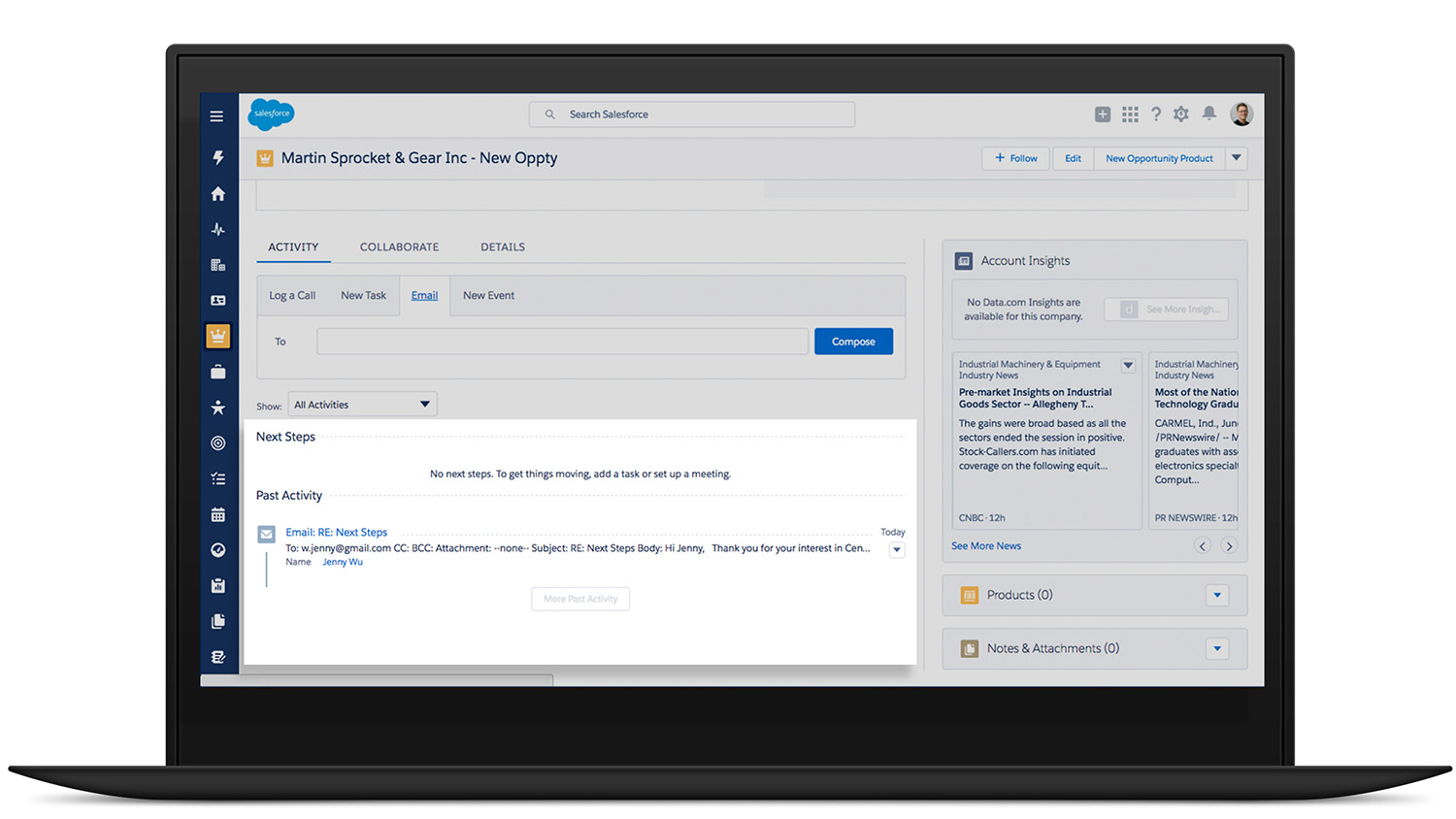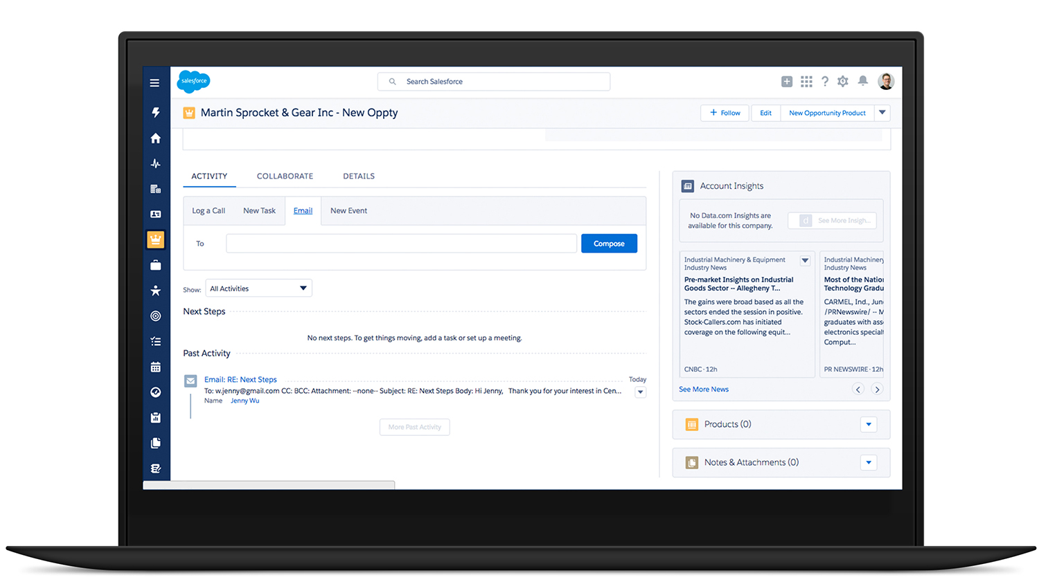 You have a new email from an interested customer. Open Salesforce Inbox to see if there are any existing opportunities.